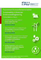 In order to get a closer look at the recent developments, we initiated a new lecture series with talks from different seminars and colloquia that address sustainability aspects in materials science.